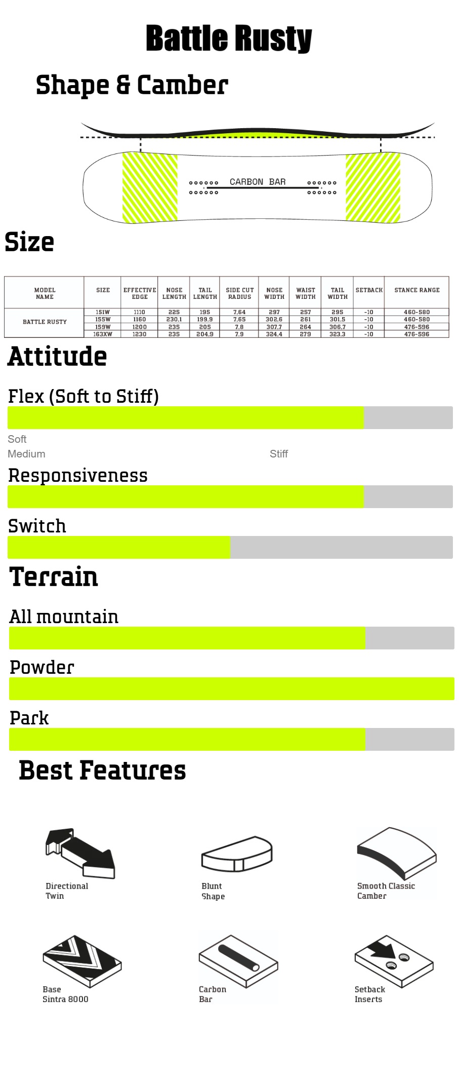 und etwas breiter als das Heck, kombiniert mit einem mittelharten Flex und einem Camber-Profil, machen,